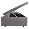 Soporte metálico anti-deslizante que evita que cuando se levante la tapa el colchón se deslice hacia atrás. Profundidad interna 30 cm.