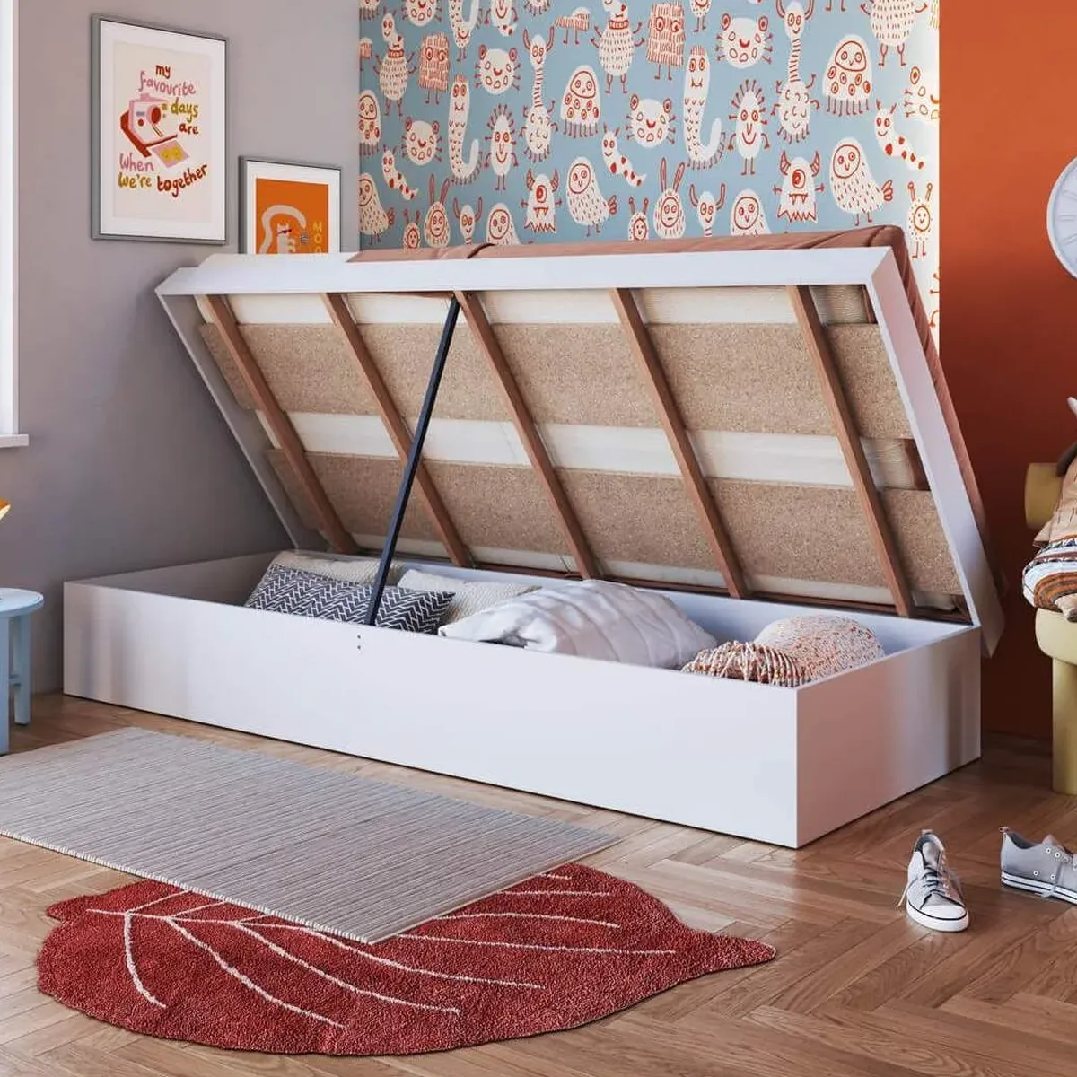 Optimizar los espacios es uno de nuestros objetivos primordiales, y para eso desarrollamos la cama baúl articulable en 1 plaza.