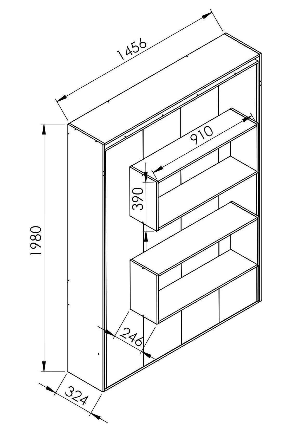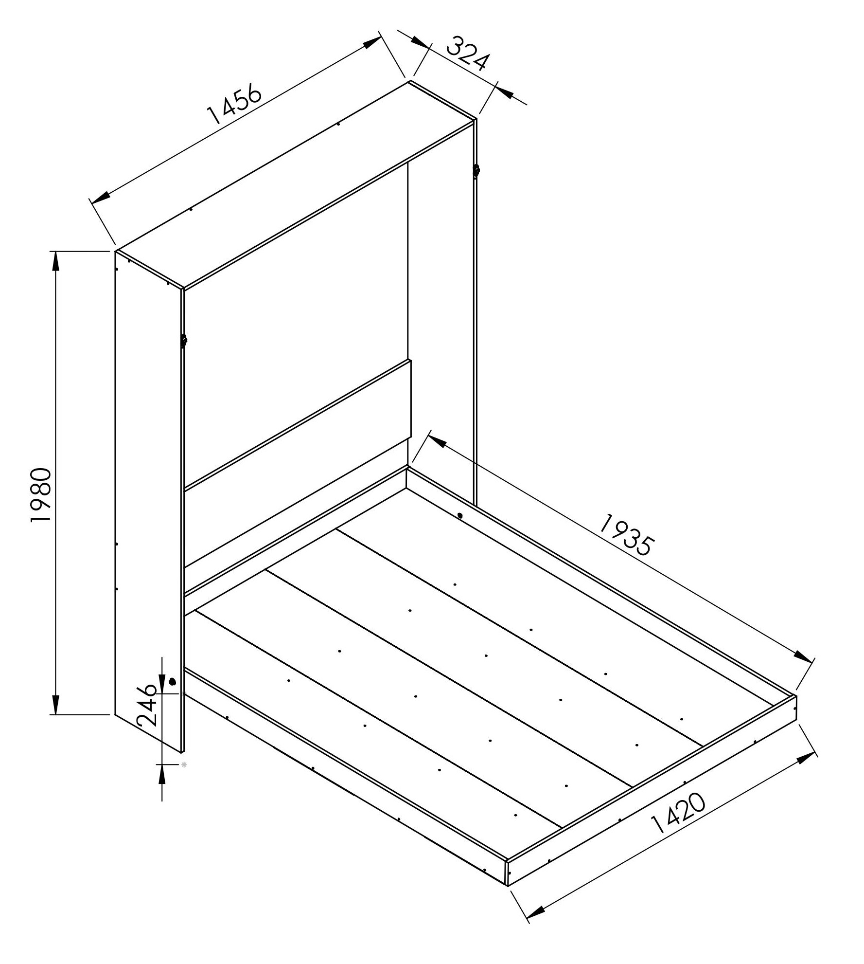 MEDIDAS: Largo: 32 – 194 cm – Alto: 198 cm – Ancho: 146 cm