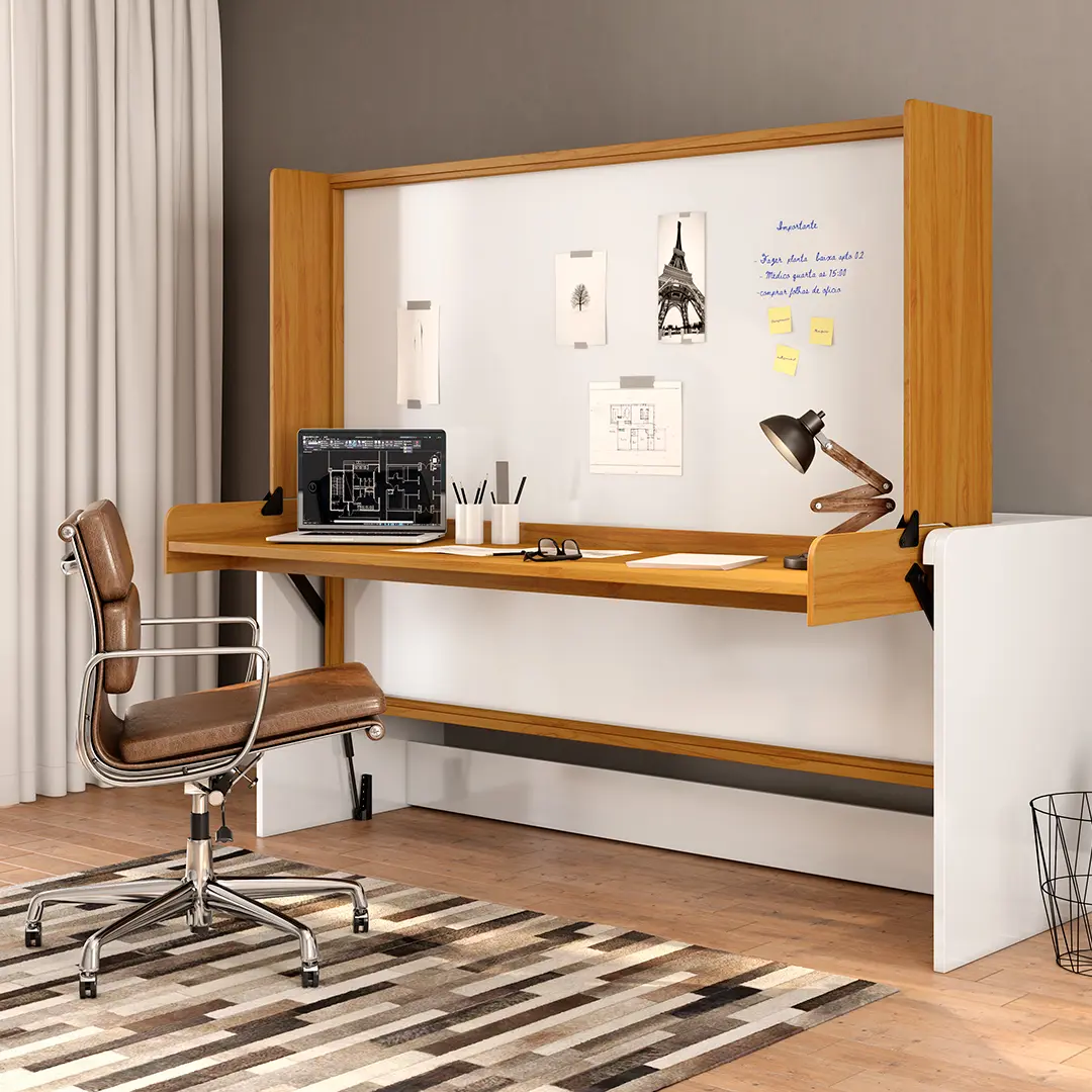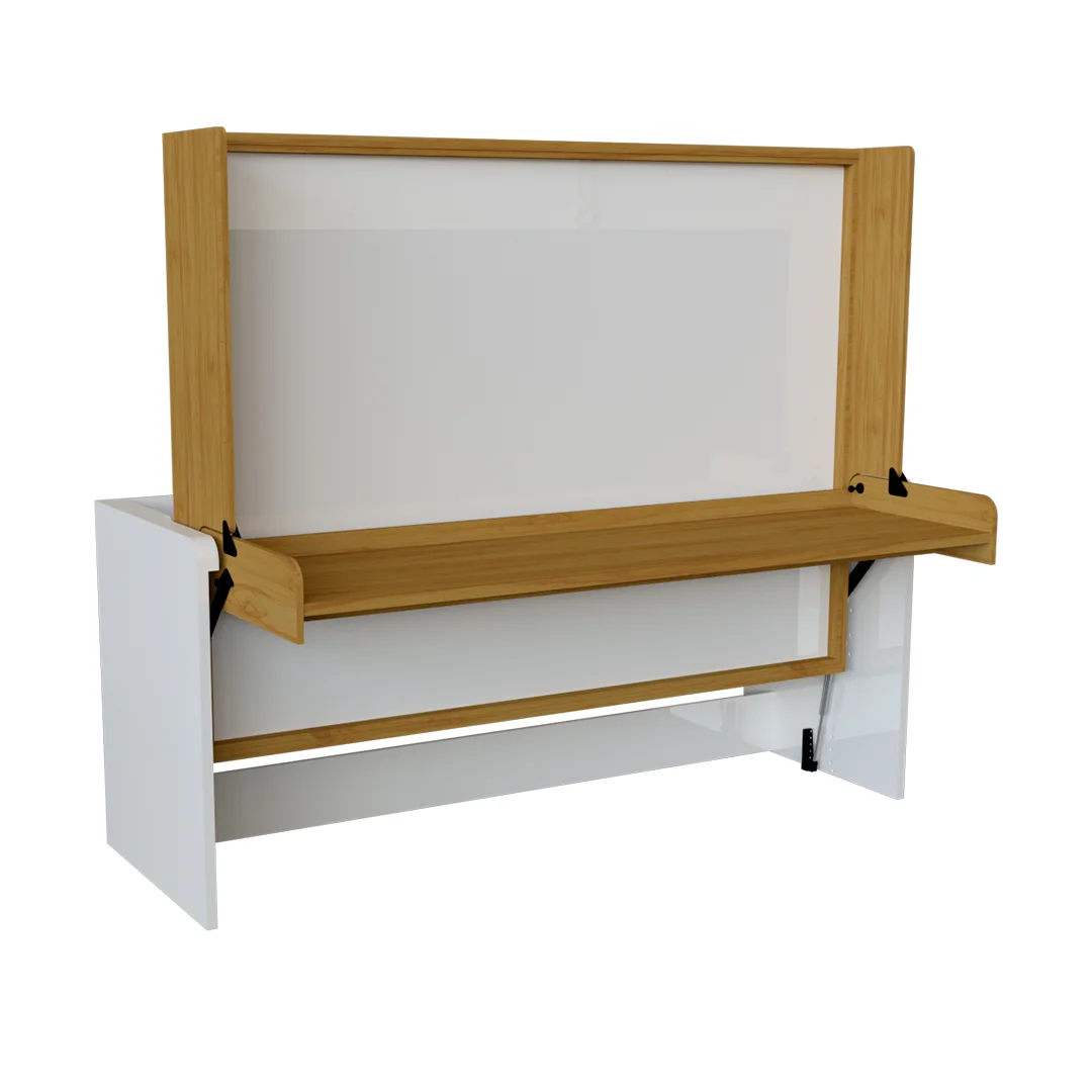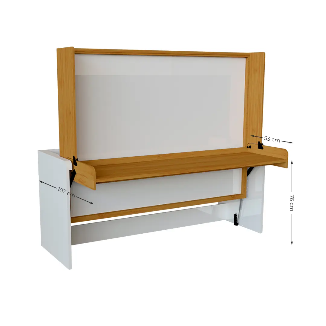 Fabricada en MDP de 15 mm y 25 mm de espesor. La cama repisa rebatible First de 2 plazas es el combo perfecto para optimizar tu dormitorio. En un mismo mueble puedes dormir por la noche y trabajar o estudiar durante el día, aprovechando al máximo tus espacios.