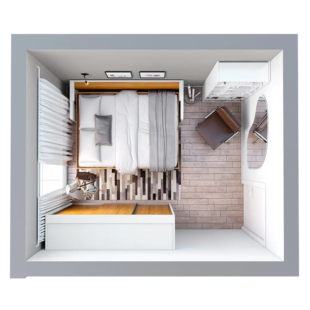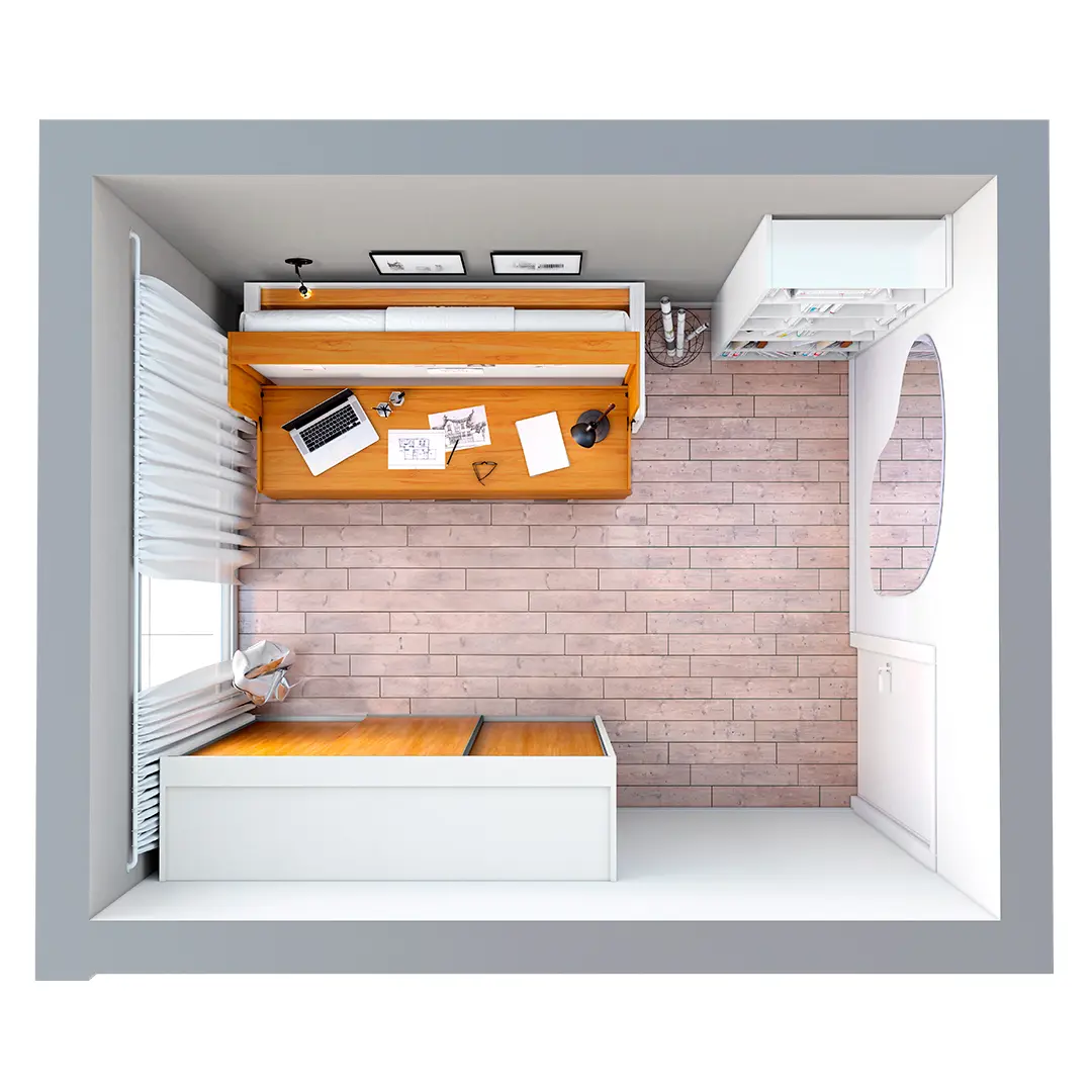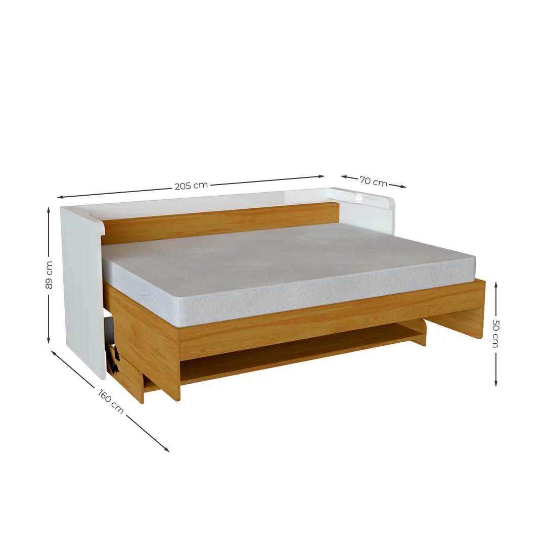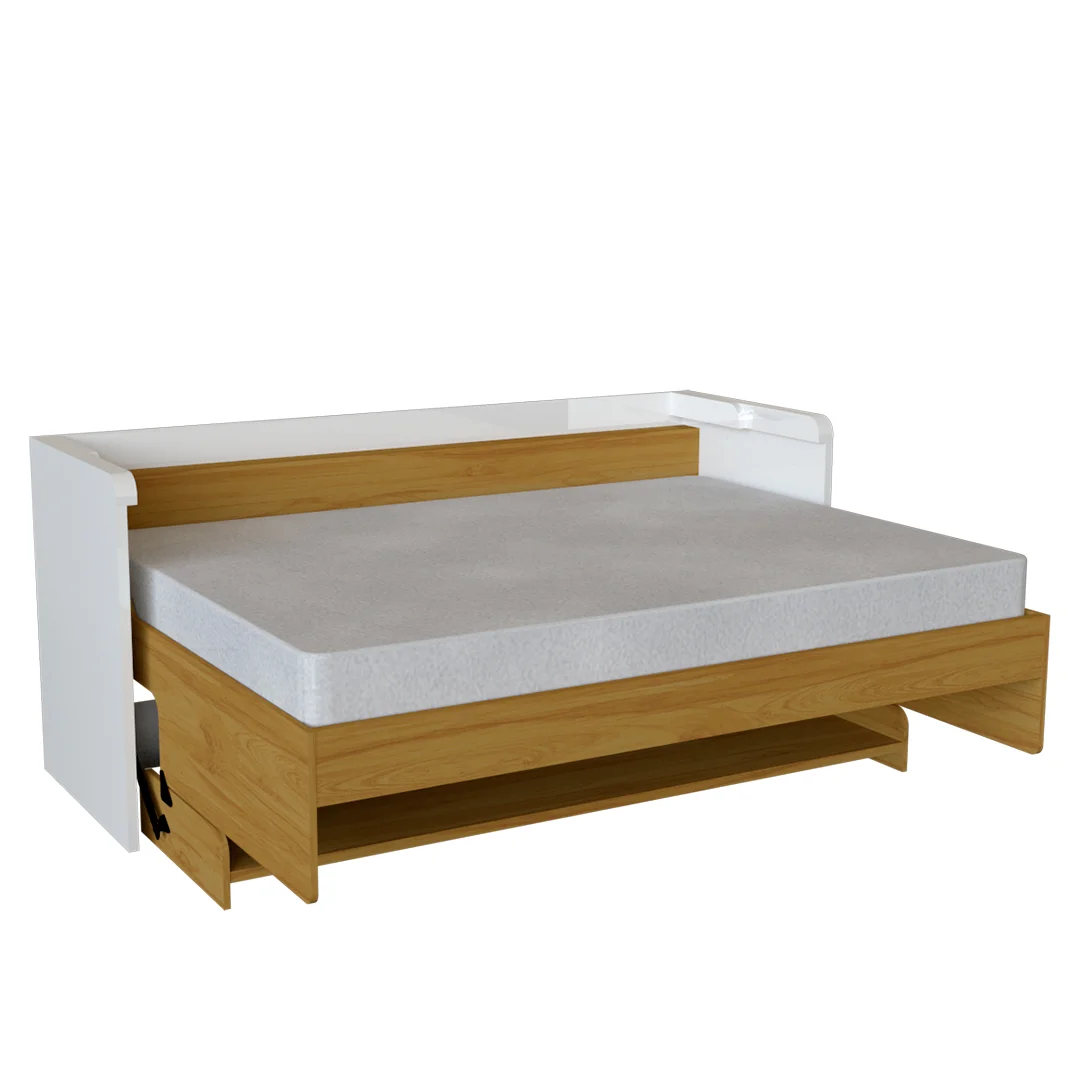 Fabricada en MDP de 15 mm y 25 mm de espesor. La cama repisa rebatible First de 2 plazas es el combo perfecto para optimizar tu dormitorio. En un mismo mueble puedes dormir por la noche y trabajar o estudiar durante el día, aprovechando al máximo tus espacios.