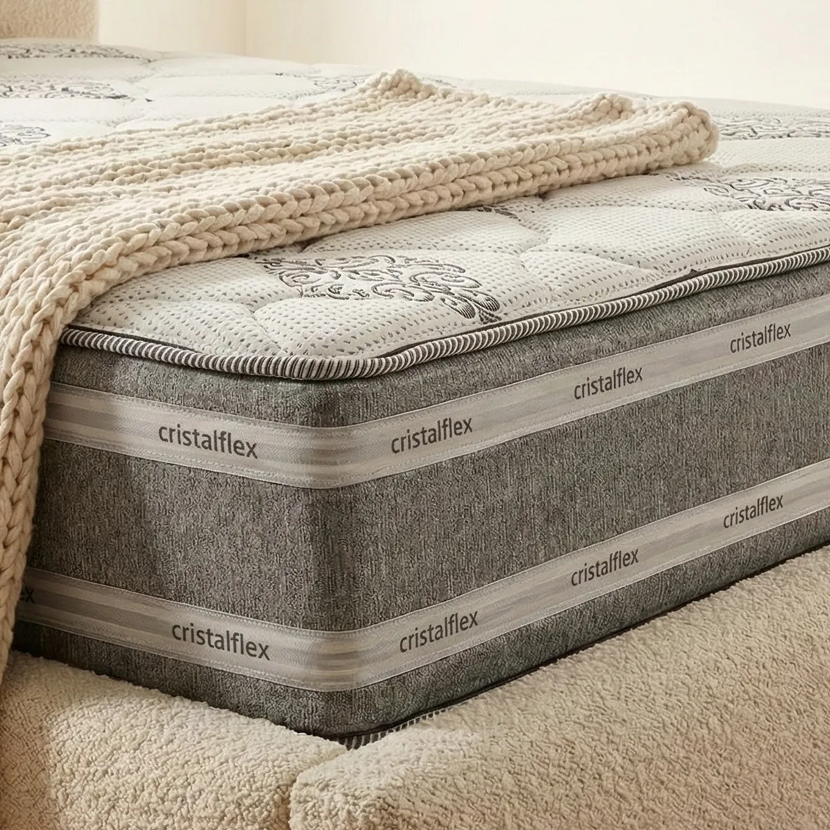 Fabricado con un núcleo de espuma aglomerada de Densidad 65 y doble Eurotop de espuma 100% poliuretano Densidad 26.