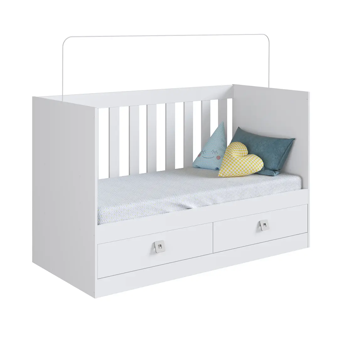 Las barandas se pueden ajustar a tres alturas diferentes para brindar comodidad en cada etapa del bebe.