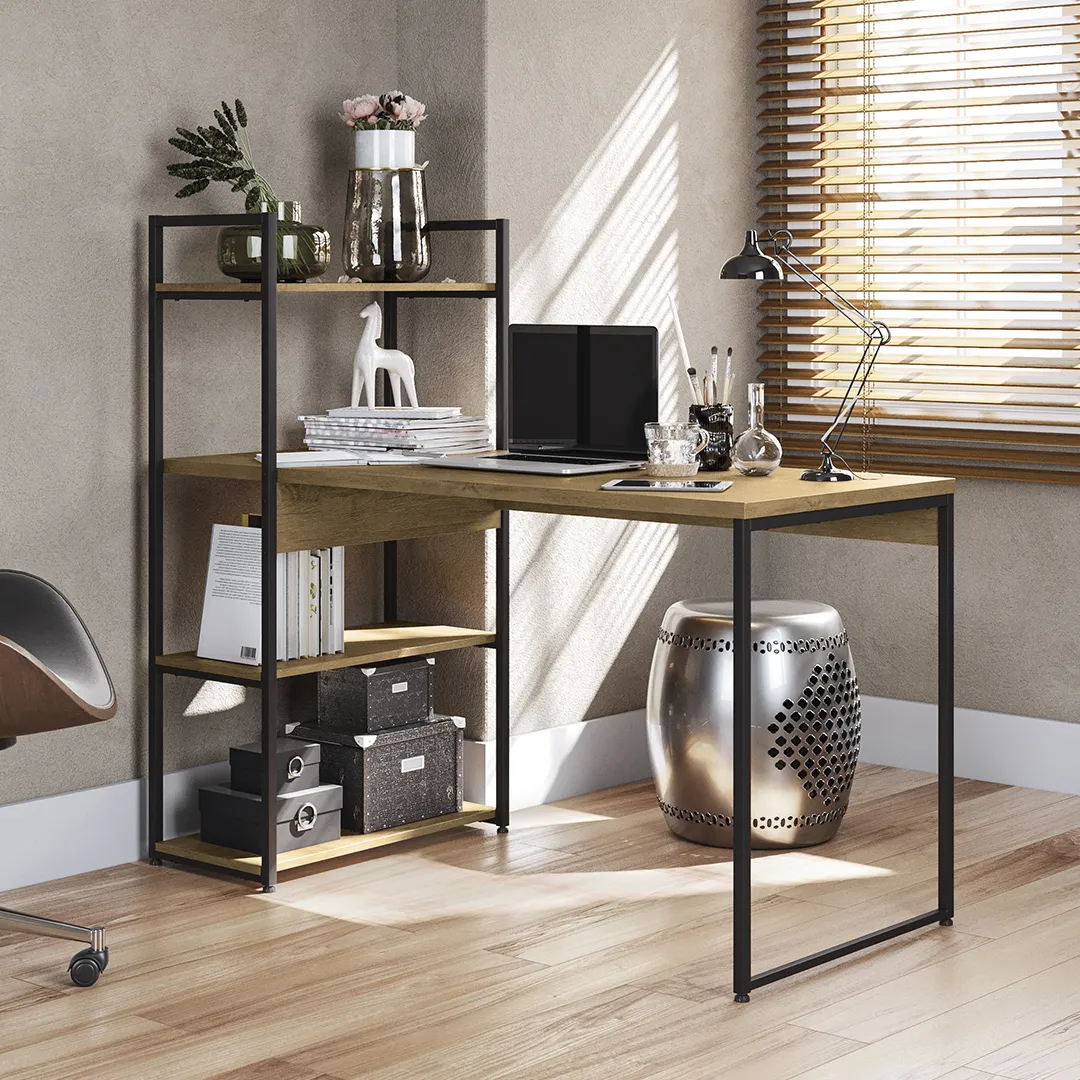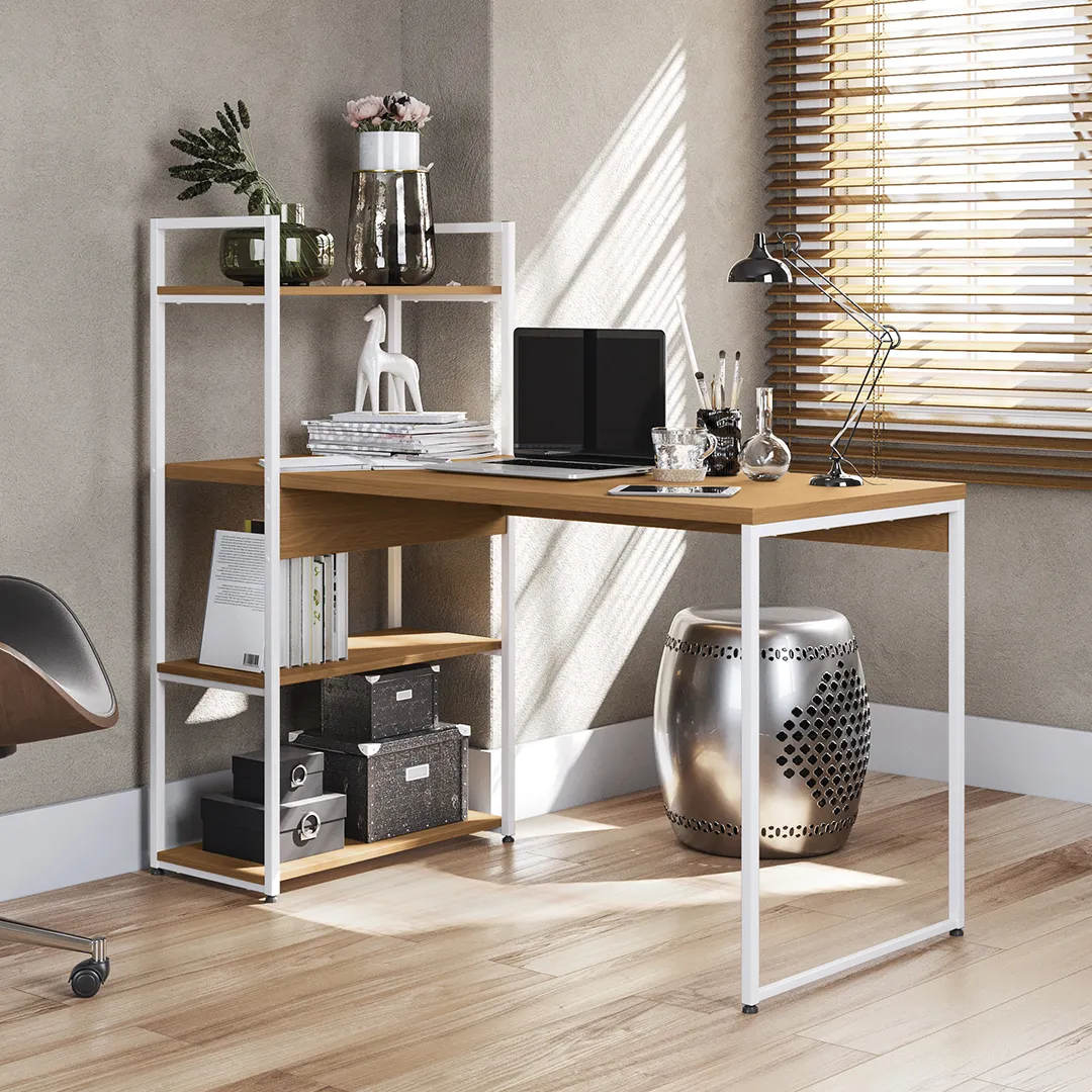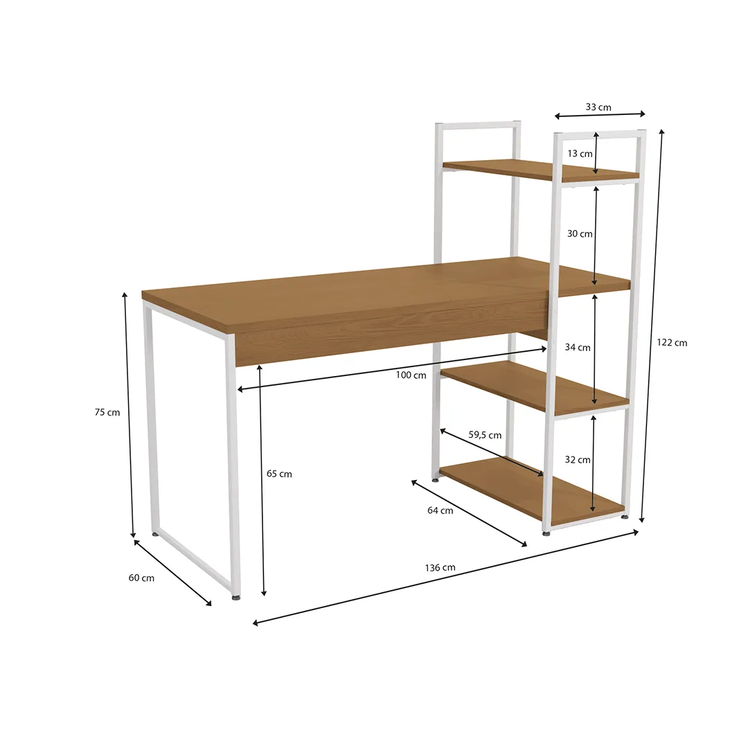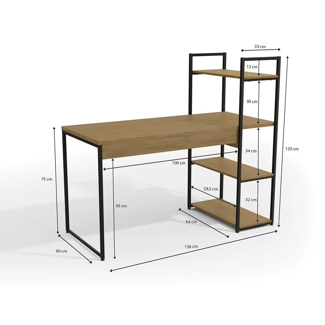 La mesa escritorio KAP ofrece una solución práctica y moderna para tu espacio. Fabricada en MDP con estructura metálica, combina resistencia con un diseño contemporáneo. Cuenta con tres estantes laterales que aportan funcionalidad y organización. Su acabado tipo “Touch” aporta una textura suave y elegante. Soporta hasta 60 kg en la mesa principal y 7 kg por estante.