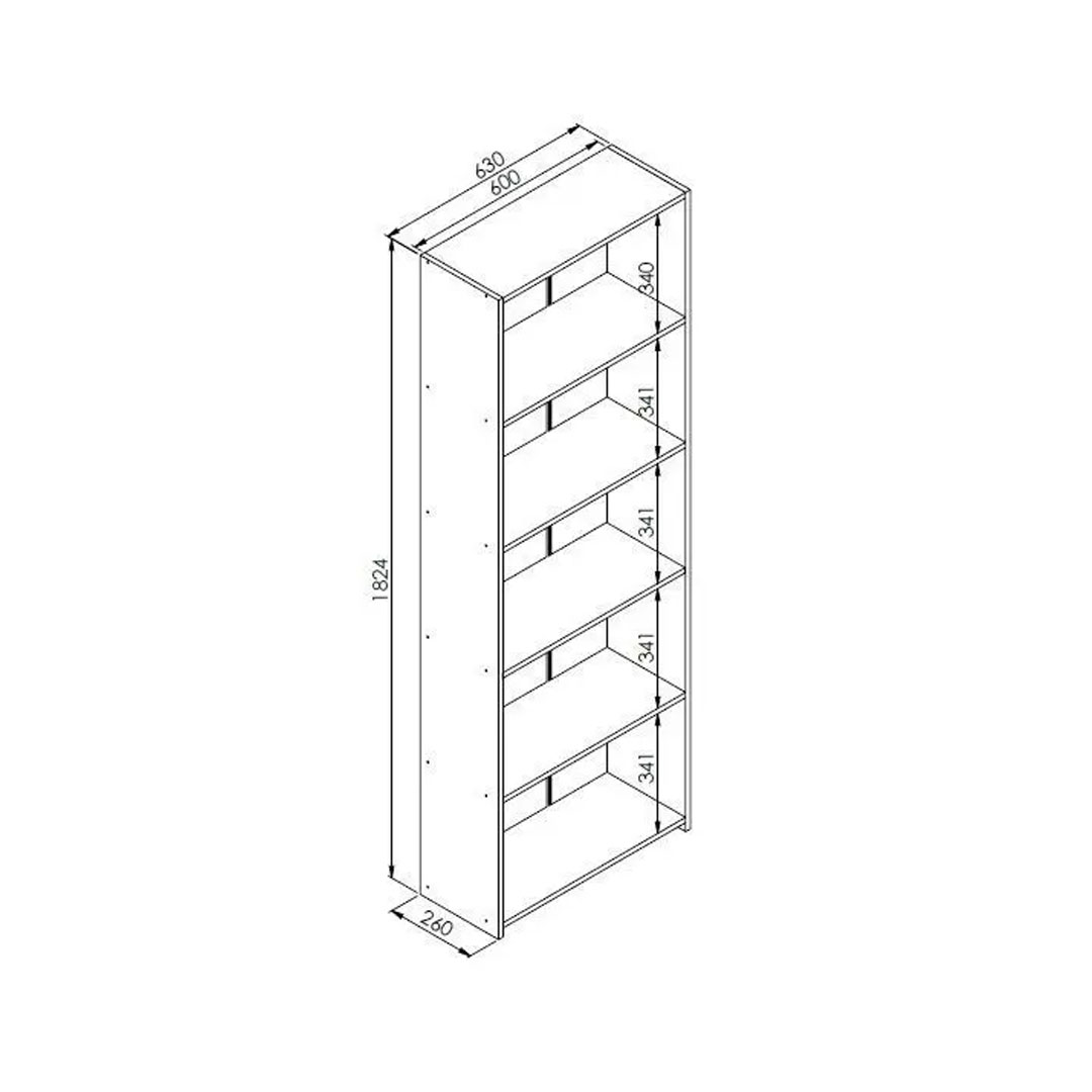 Cuenta con 5 estantes. Fabricado con placas de MDP de 15 mm de espesor y acabado Finish Foil satinado, garantiza mayor resistencia y calidad.