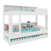 Cuenta con 2 estanterías en cada cama, escalera y cama auxiliar marinera.