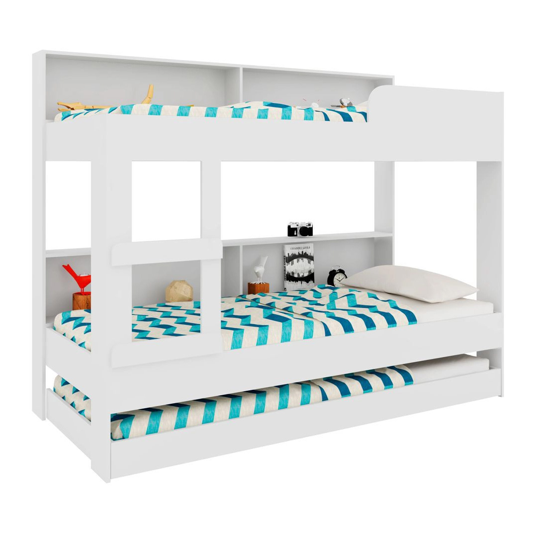 Cucheta con estantes fabricada en placas de MDP de 15 mm de espesor con cama auxiliar.